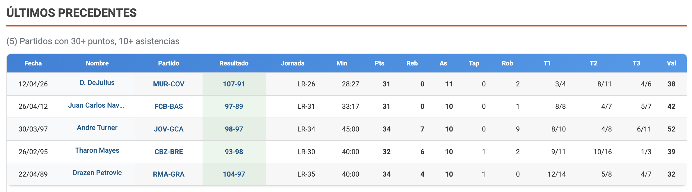 Drazen Petrovic, Tharon Mayes, Andre Turner y Juan Carlos Navarro. Casi nada. Nombres ilustres, de los que más, de la historia de la Liga ACB. Hasta esta mañana, los únicos jugadores en la historia de la liga que habían conseguido firmar un partido de 30 o más puntos y 10 o más asistencias.
