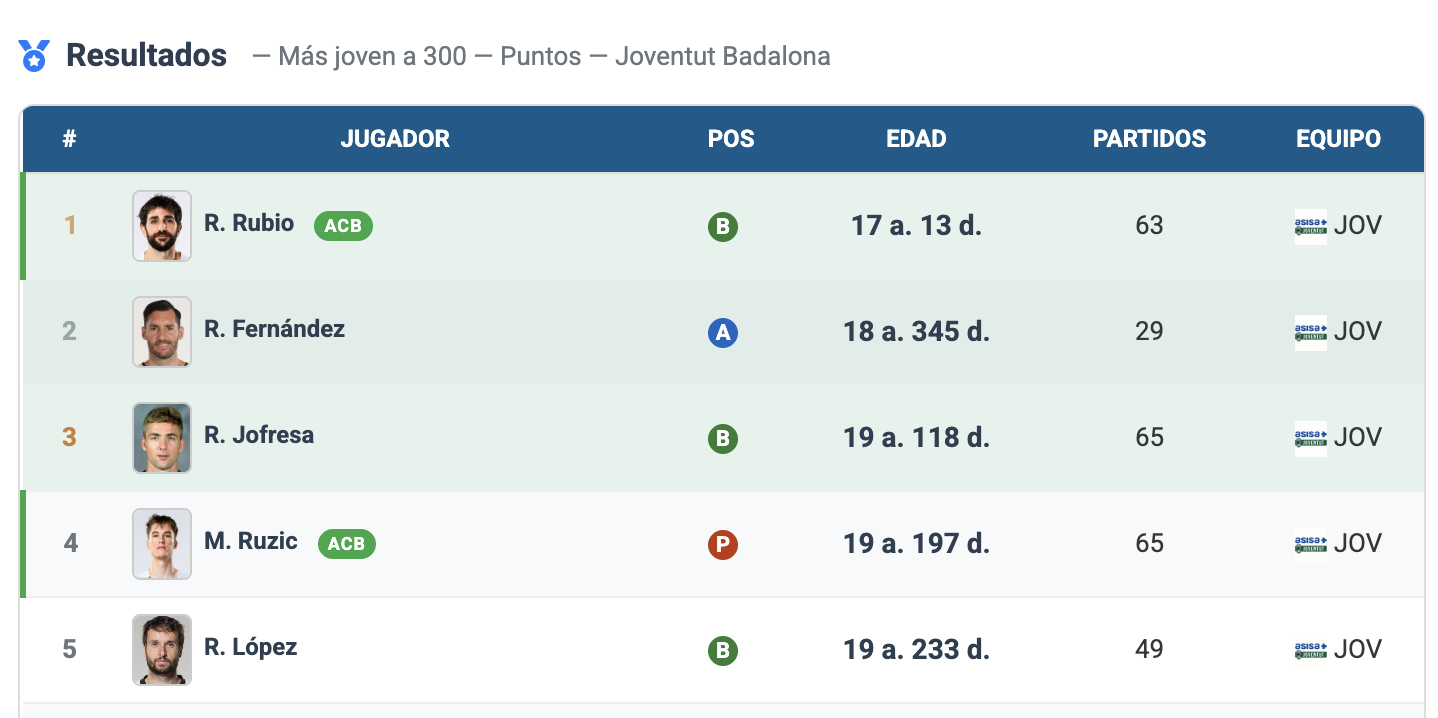 Ruzic, que está aprovechando los minutos extra que le están brindando las bajas en el juego interior verdinegro, se convirtió también ayer en el 4º jugador más joven en alcanzar 300 puntos anotados en ACB con el Joventut. Por delante de él, nombres ilustres del club: Ricky Rubio, Rudy Fernández y Rafa Jofresa. Justo detrás, toda una institución como Raül López.